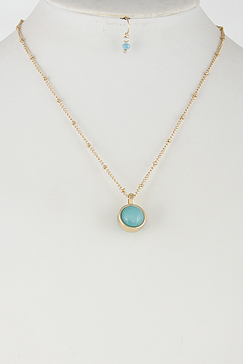 • * Antique Inspired Pendant Necklace With Stone 6FAI6 * 18" approx.