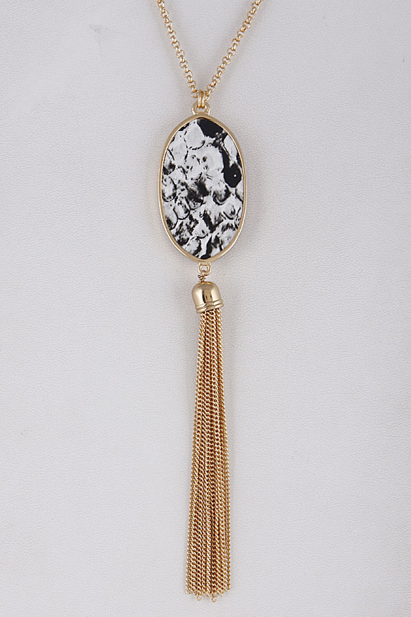 - * Chain Tassel & Oval Pendant Long Necklace 8LBA6