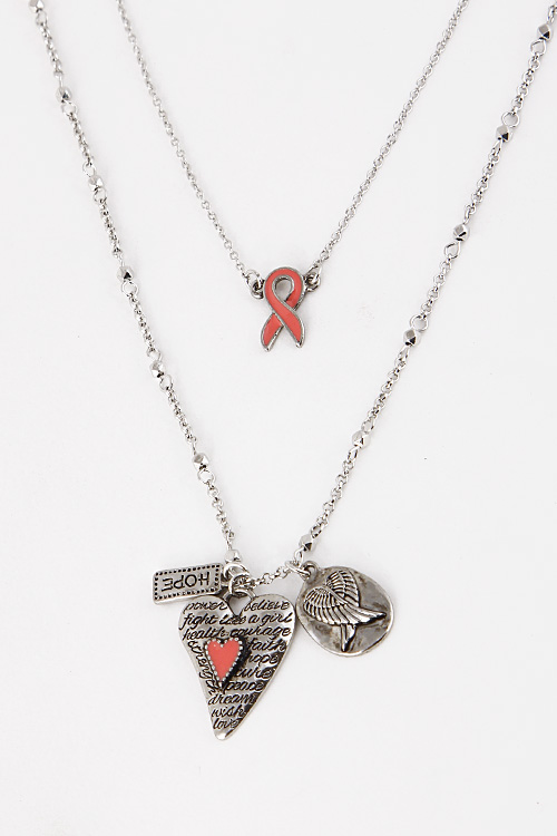 • * Love Heart Ribbon Tie Pendant Charm Necklace 5CCF1 * 20" approx.