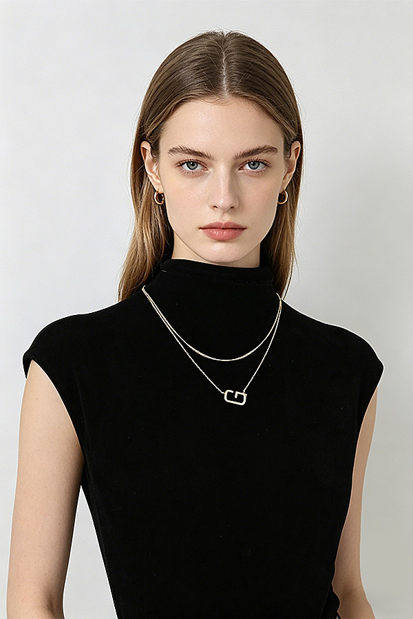 - * This Polished G Pendant Chain Necklace from H&D Accessories features a sleek double-chain design with two layered, polished chains of varying lengths, centered with a minimalist, open-frame "G" pendant that has a smooth, reflective finish, creating a modern, versatile silhouette perfect for elevating everyday casual looks, office outfits, or layered styling for a polished, sophisticated aesthetic.