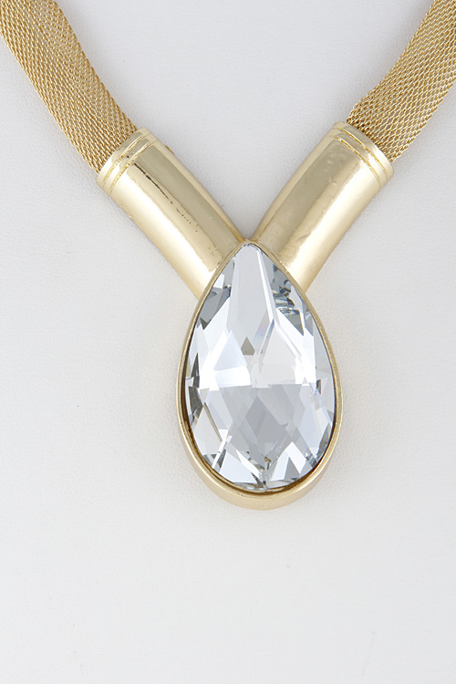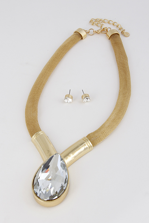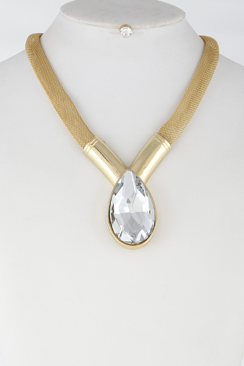 • * Thick Formal Rhinestone Tear Drop Necklace Set 6FCC6 * 16" approx.