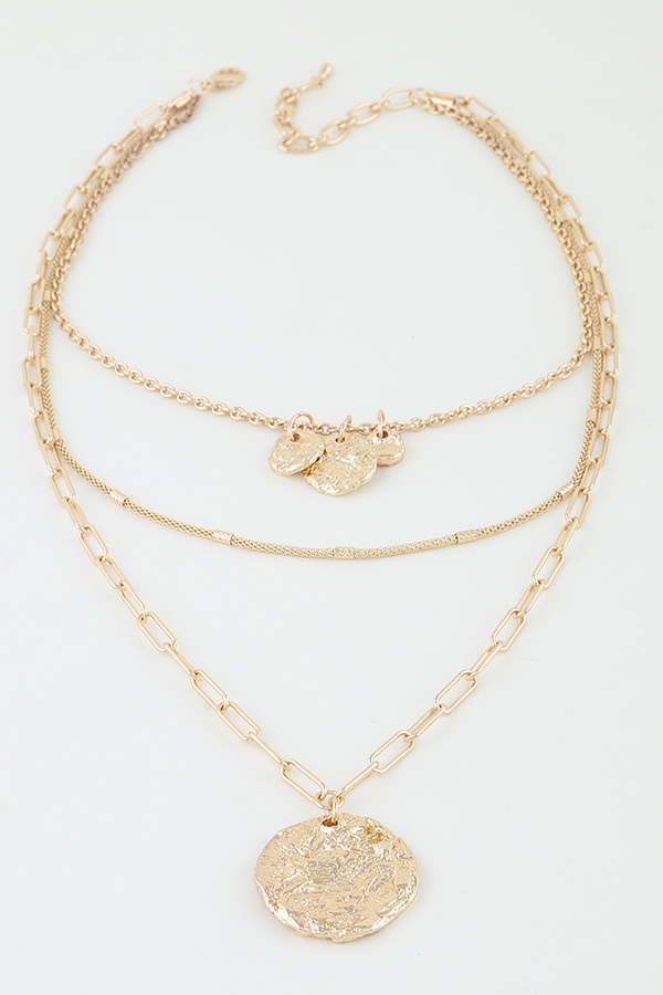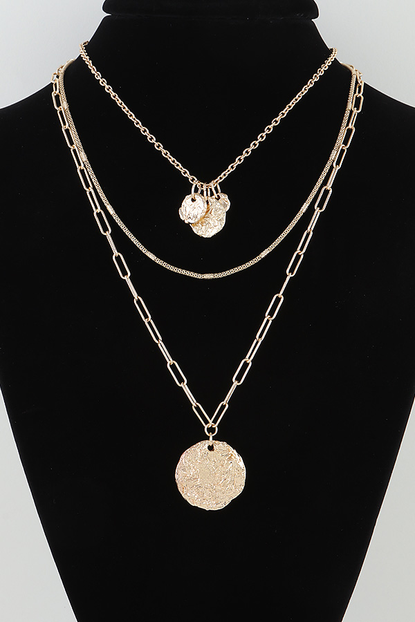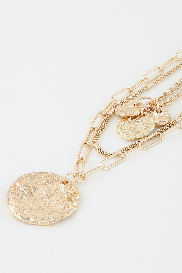 - * Multi Hammered Disc Chain Necklace