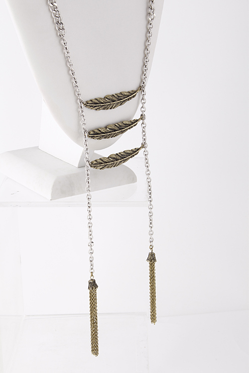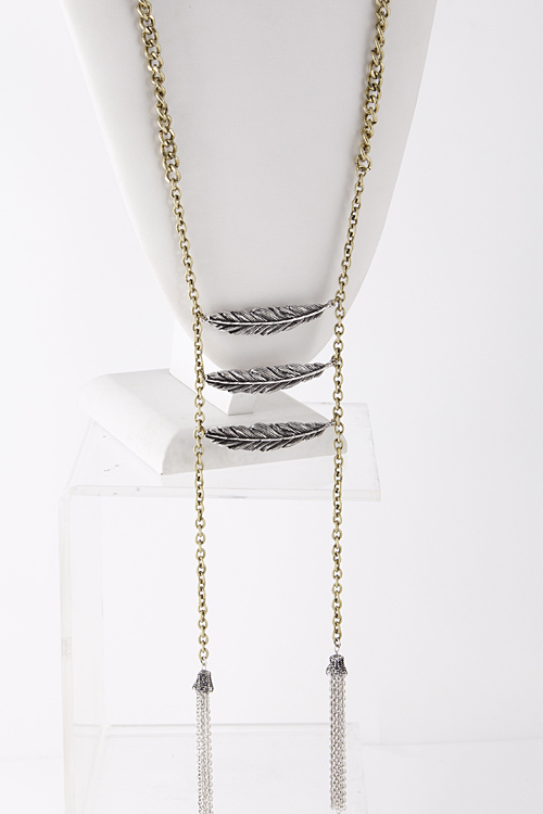 • * Three Feather Lined Long Chain Drop Necklace 5FAC2 * 50" approx.