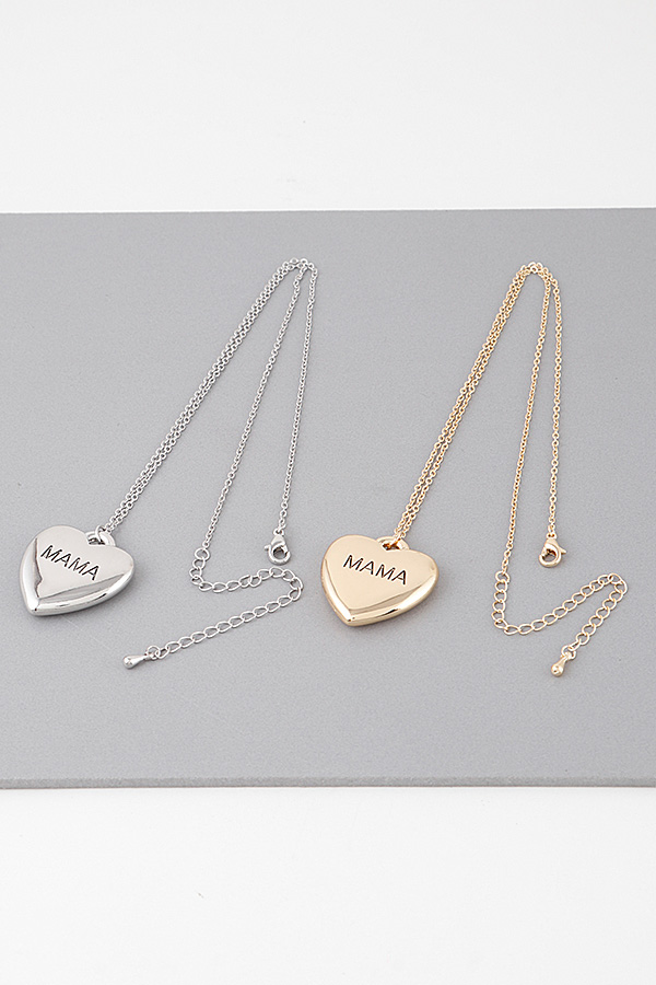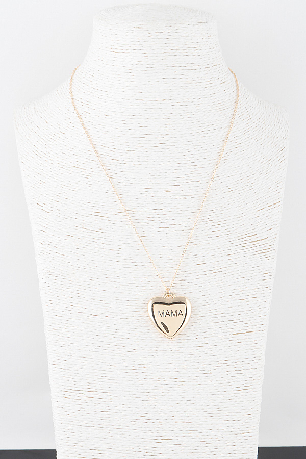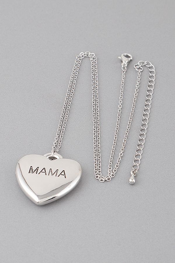 - Crafted by 3AM by H&D Accessories, the MAMA Heart Pendant Necklace is a stylish testament to the undying bond of motherhood. With an approximate length of 18", this necklace is designed to rest beautifully on the collarbone, making it a perfect accessory for any outfit. Although the brand is renowned for its diverse range of quality boutique-style accessories, this necklace stands out with its heartwarming message and elegant design. Celebrate motherhood in style with this chic pendant necklace.