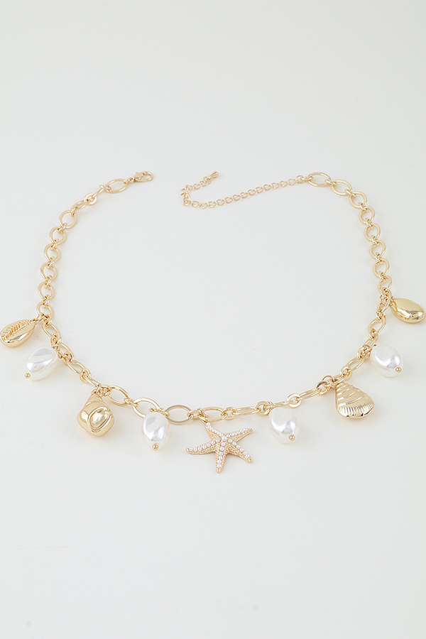 - * The Under the Sea Charms Chain Necklace From H&D Accessories features a chain adorned with various sea-inspired charms like shells, a starfish, and pearls. Its design blends whimsical ocean elements with delicate chain details, creating a playful yet elegant look. Meticulously crafted, it merges marine-themed artistry with refined styling, making it a distinctive accessory that brings a touch of seaside charm to your collection.