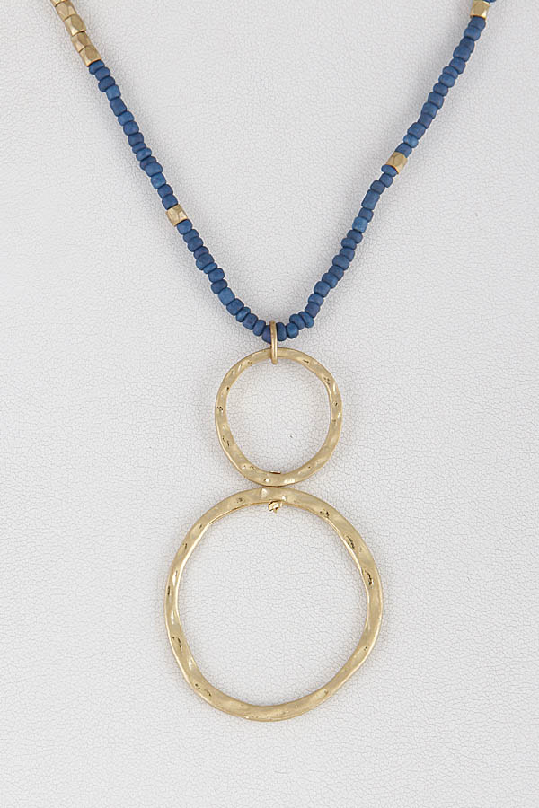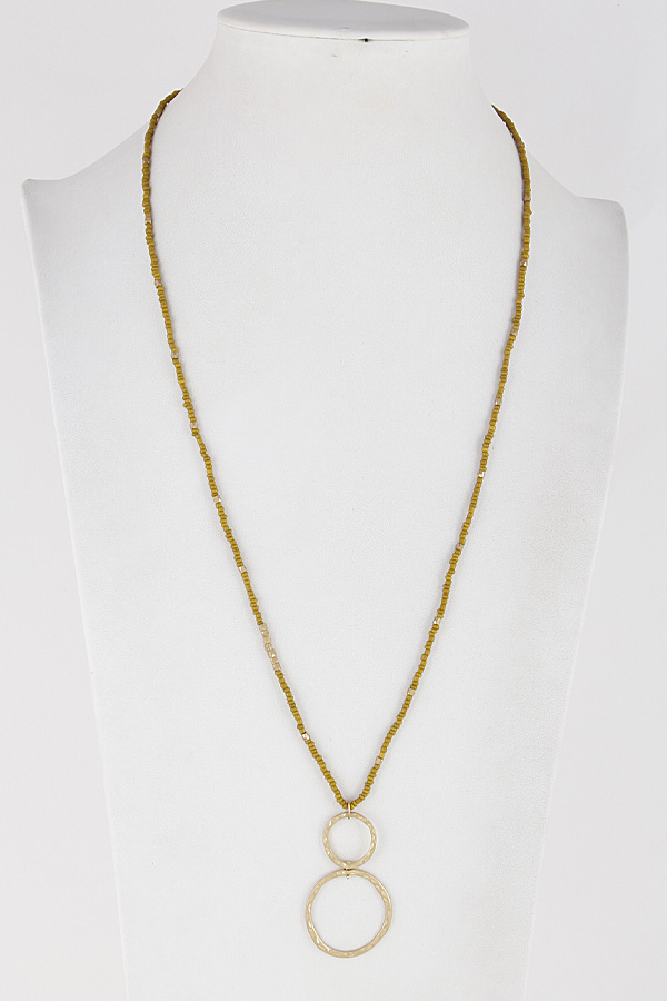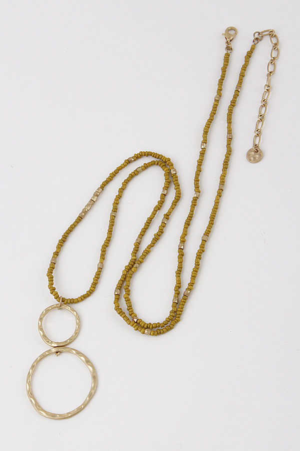 - * Beaded Long Necklace With Hammered Circle Pendant 8JBB10
