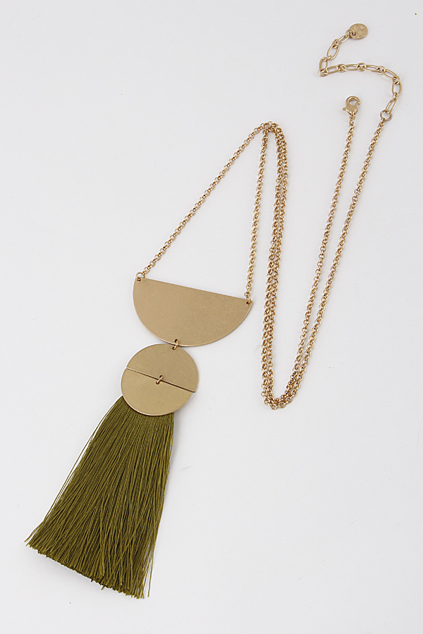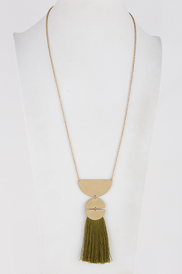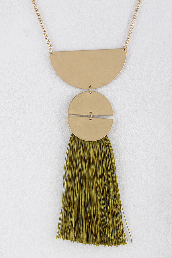 - * Long Fringe Tassel Necklace With Metal Details 8IBB7