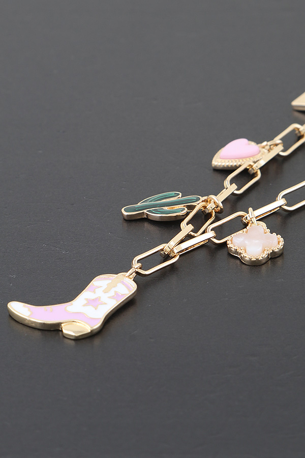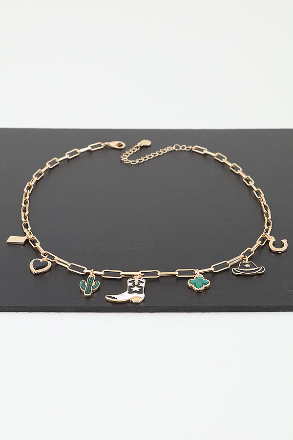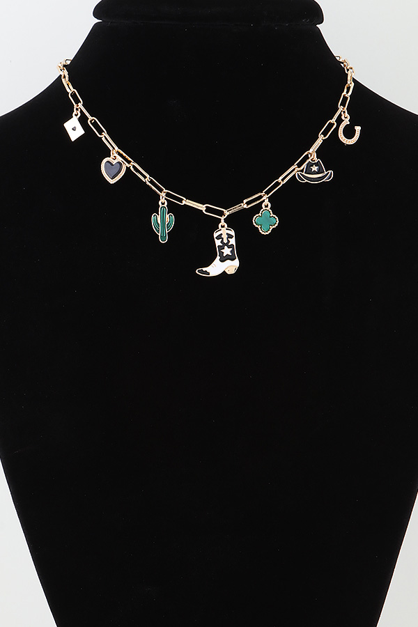 - * Introducing the "Wild West Charms Necklace" from H&D Accessories, where every charm tells a story of adventure and spirit. This exquisite piece captures the essence of the Wild West, making it a perfect accessory for those who embrace their free-spirited nature. Elevate your style and showcase your individuality with this unique necklace that celebrates the charm of the frontier.
