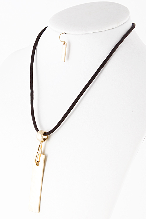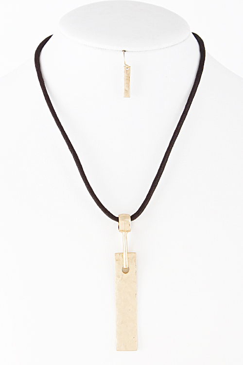 - * Flat Rectangle Vertical Bar Pendant Rope Necklace 5FCE6 * 18 x 3.5" approx.