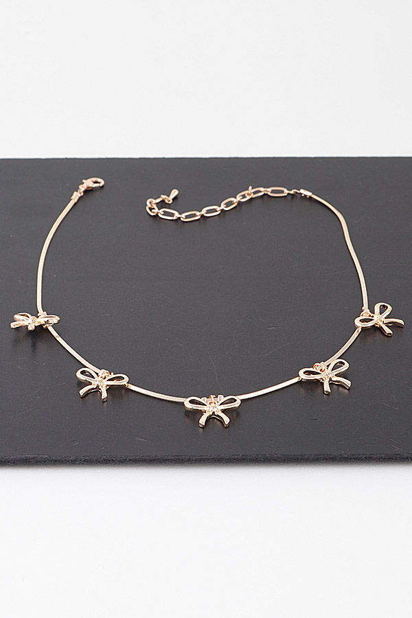 - * Petite Shiny Ribbon Charm Box Chain Necklace
