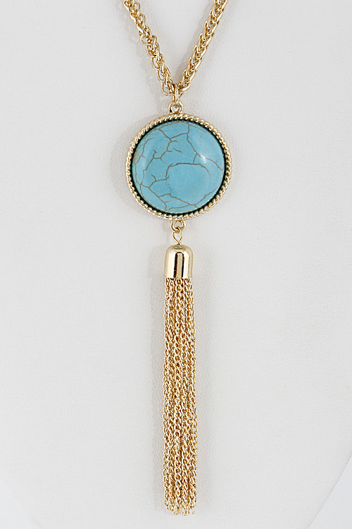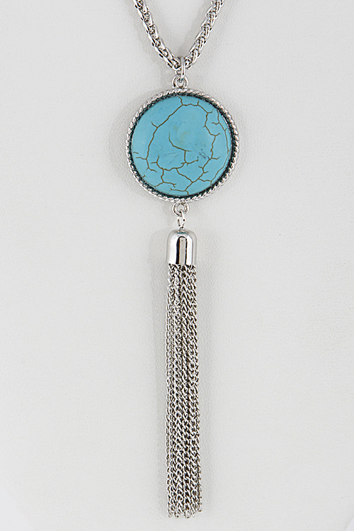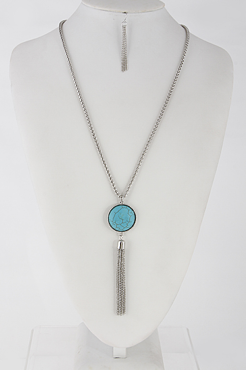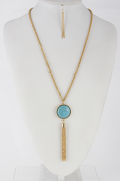 • * Long Chain Necklace With Stone And Tassel Set 6EAG2 * 24" approx.