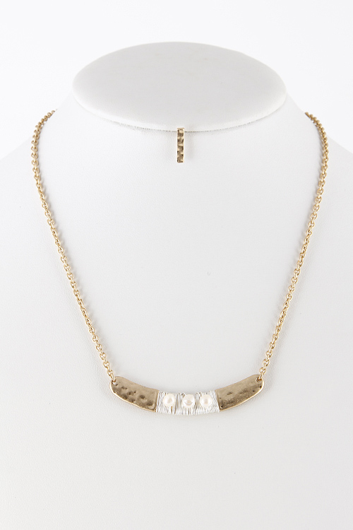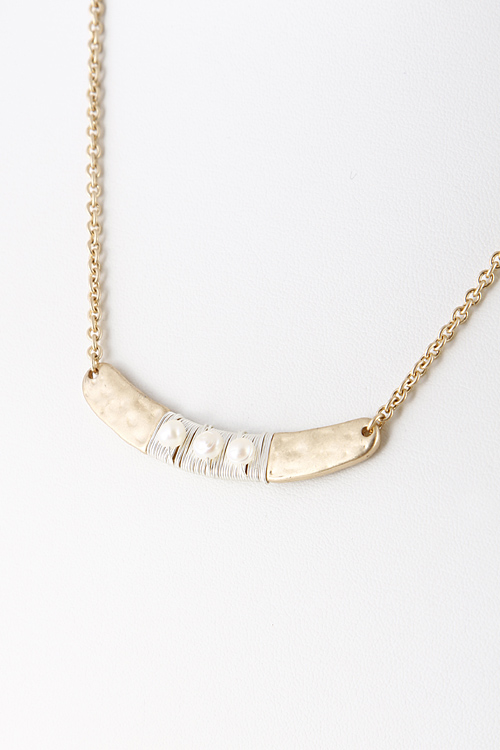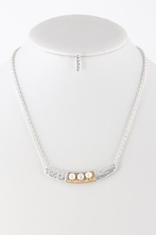 • * Curved Bar Three Pearl Wired Pendant Necklace 5FCD3 * 16 x 2.5" approx.
