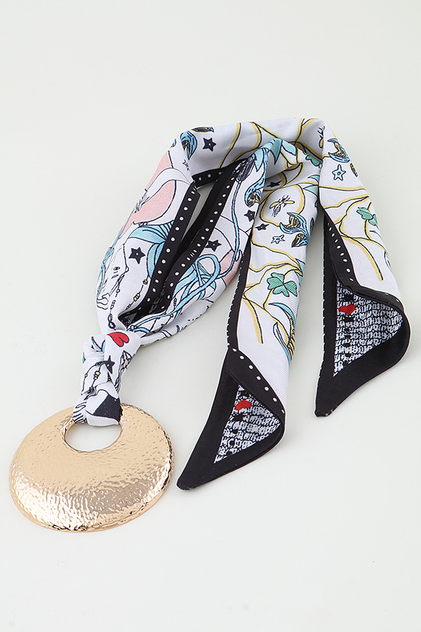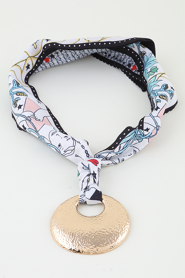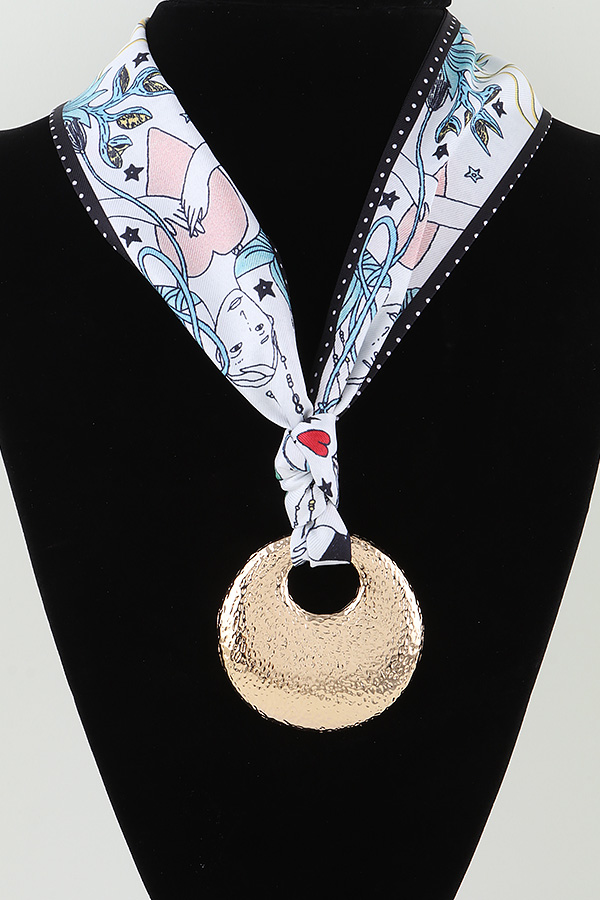 - * This necklace features a Hammered Crescent Disc Fabric Necklace from H&D Accessories. The necklace has a fabric element with an artistic pattern. The hammered crescent disc pendant adds a unique texture and a touch of sophistication. It can be a great addition to your daily outfit, making you stand out with its distinctive design.