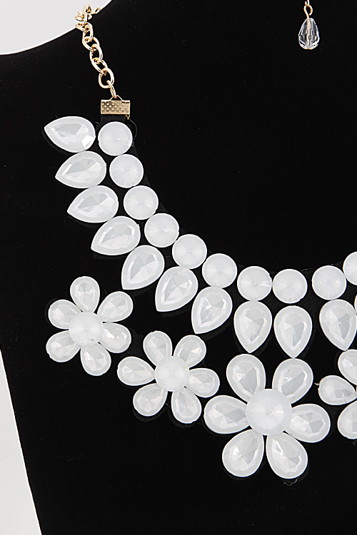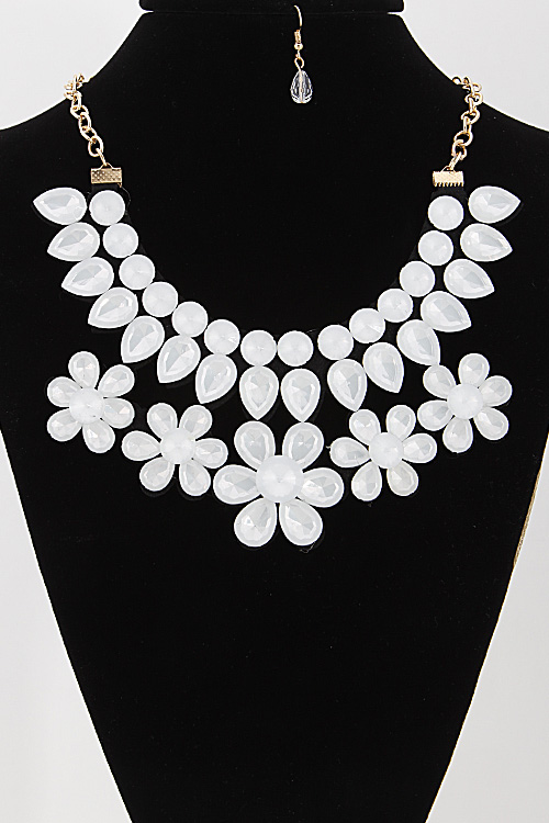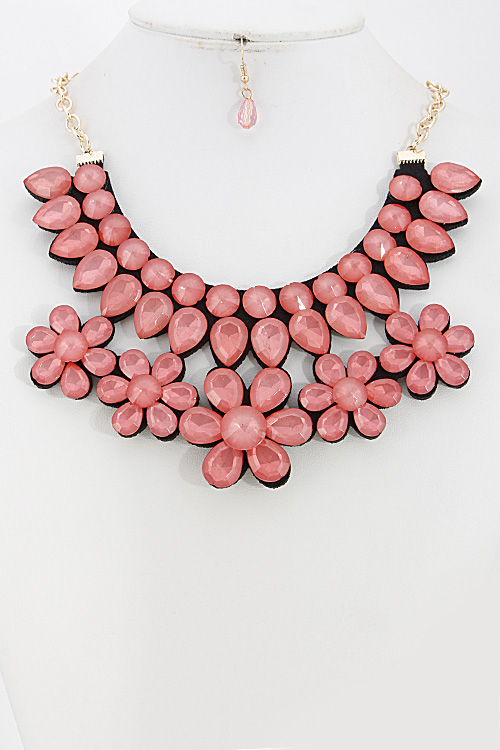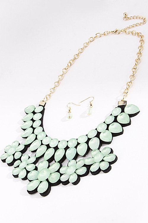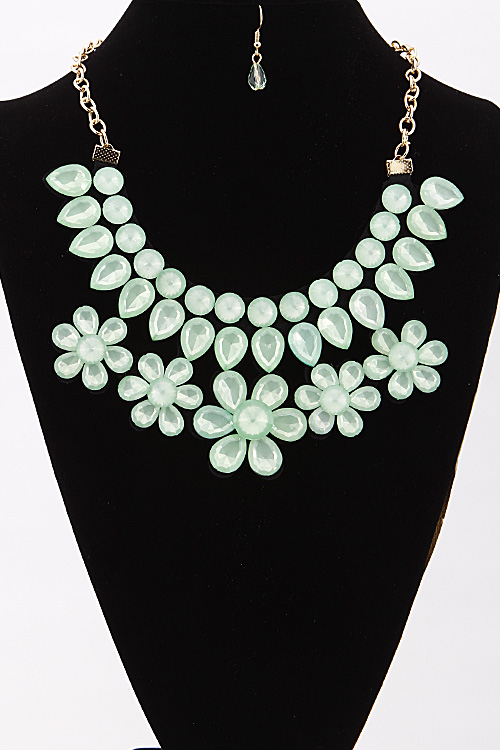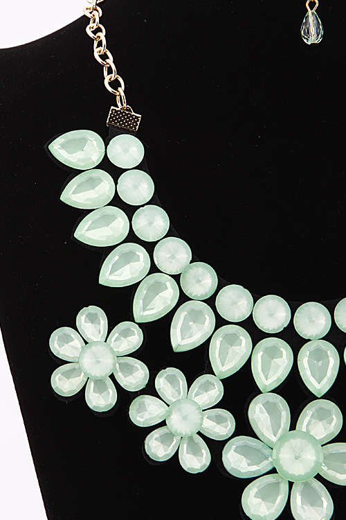 • *Stone Statement Necklace With Tear Drop And Flower Design Set 6BAI8 *16 X 3" approx.