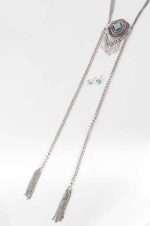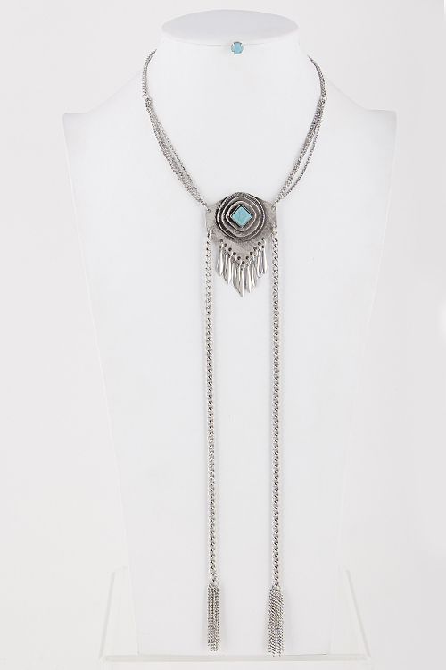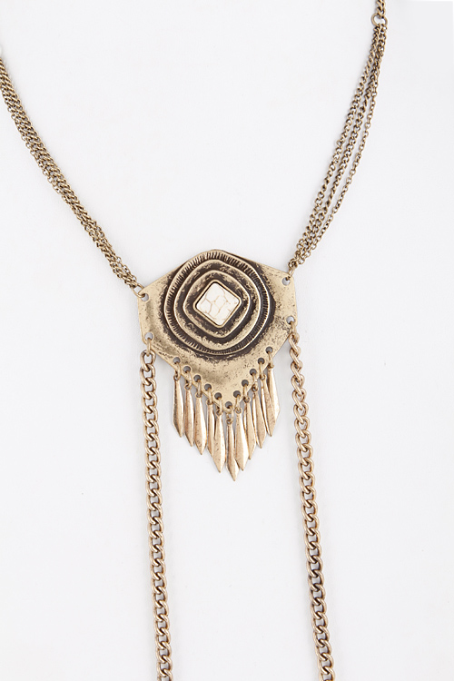 - * Aztec Collar Drop Necklace with Tassel Chain Detail 5JAD3 * 15X10" approx.