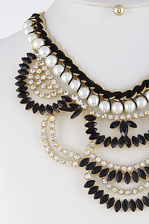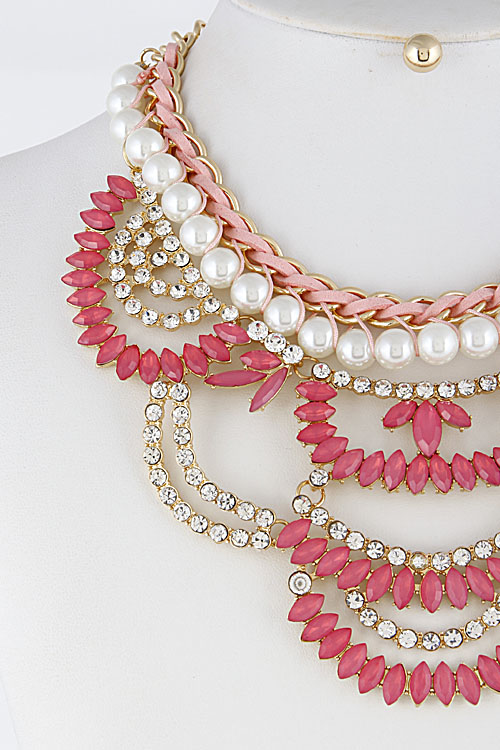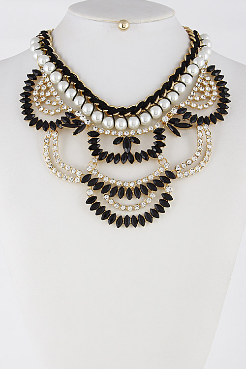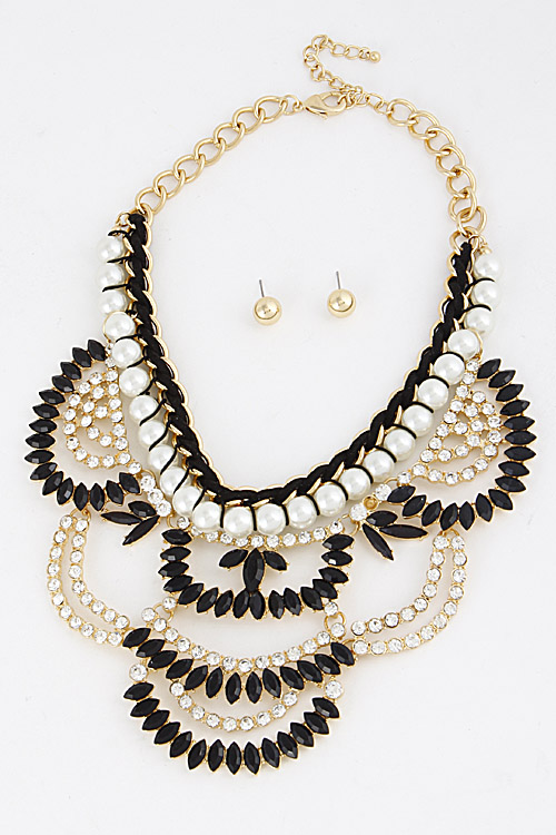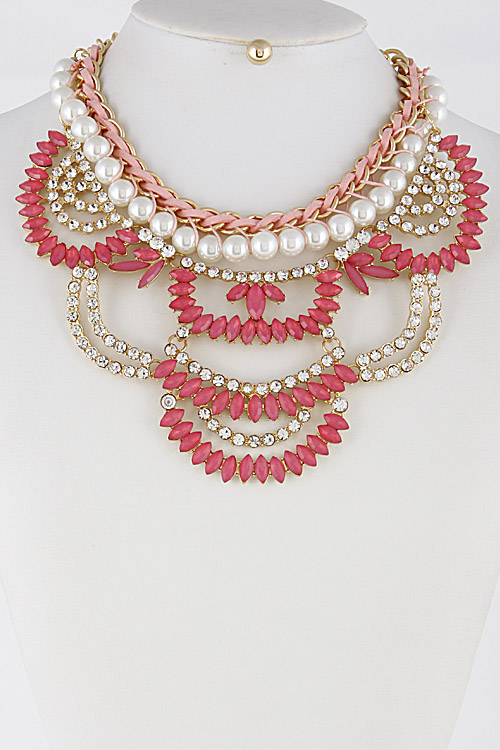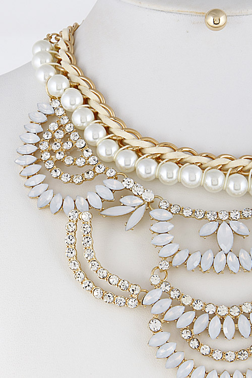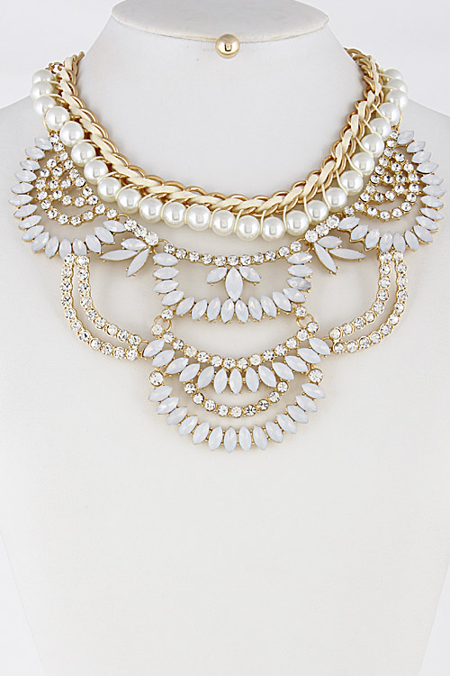• * Formal Faux Pearl Statement Necklace Set 6EBB9 * 14" approx.