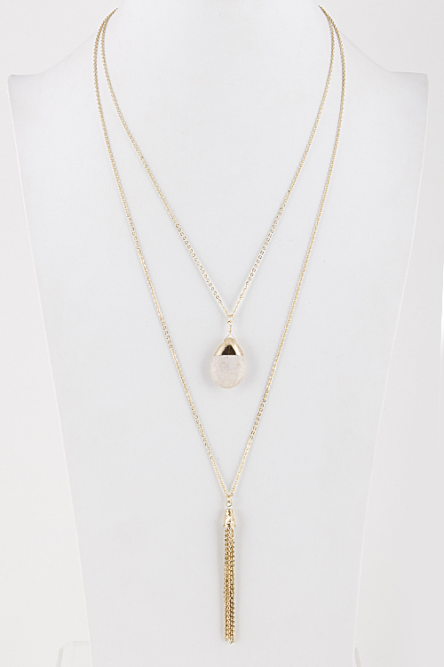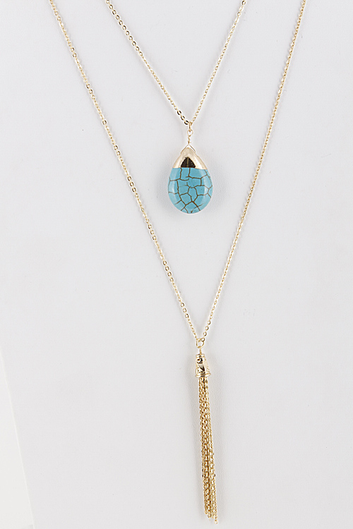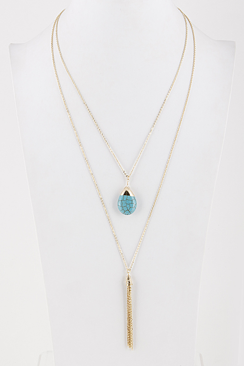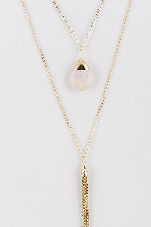 Teardrop Layered Pendant Necklace with Tassel Chain Detail 5JAE8