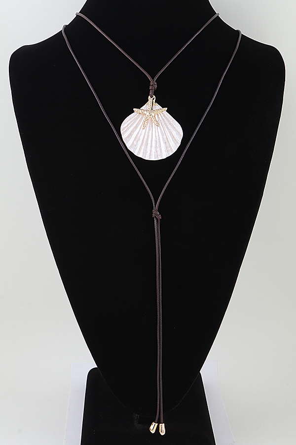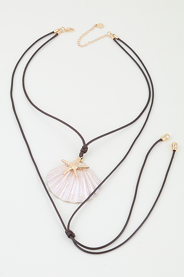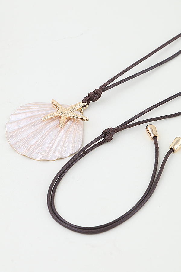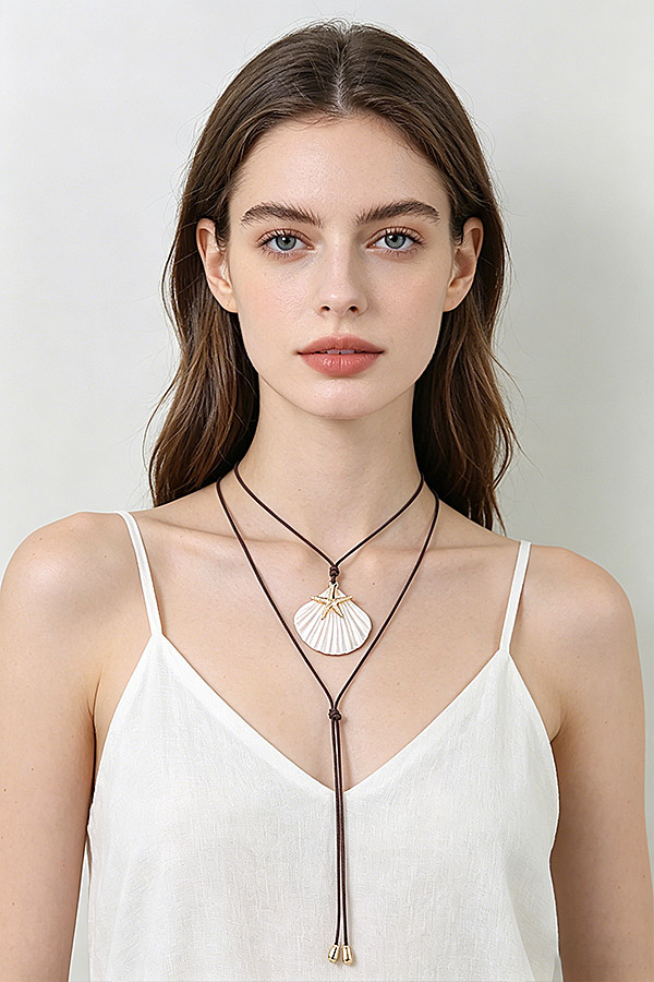 - * This Summer Starfish Shell Wrap Necklace from H&D Accessories features an adjustable wrap-style cord with sliding knots for a customizable fit, centered with a large, textured shell pendant adorned with a polished starfish charm at its center, creating a lightweight, bohemian coastal-inspired design perfect for elevating summer outfits, beachwear, vacation looks, or casual everyday styling.