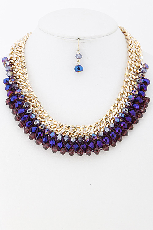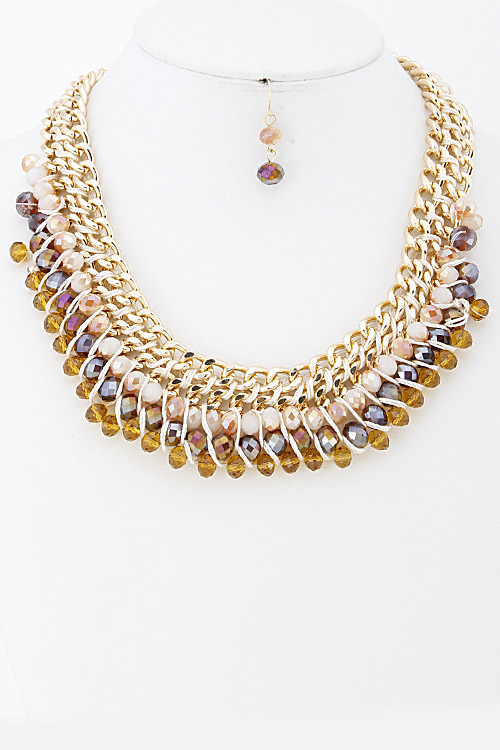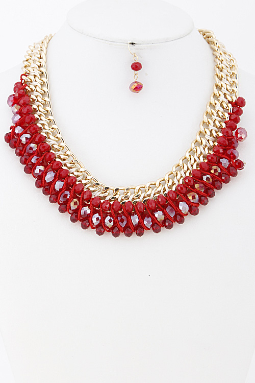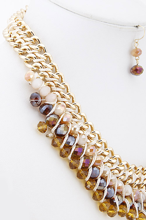 • * Bead and Chain Collar Statement Necklace Set 5KAB3 * 18" approx.