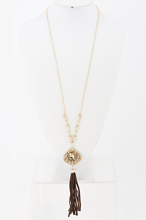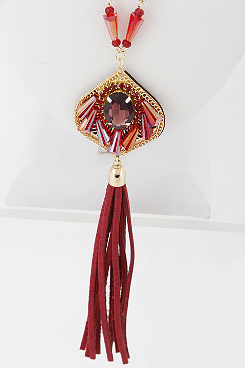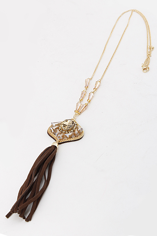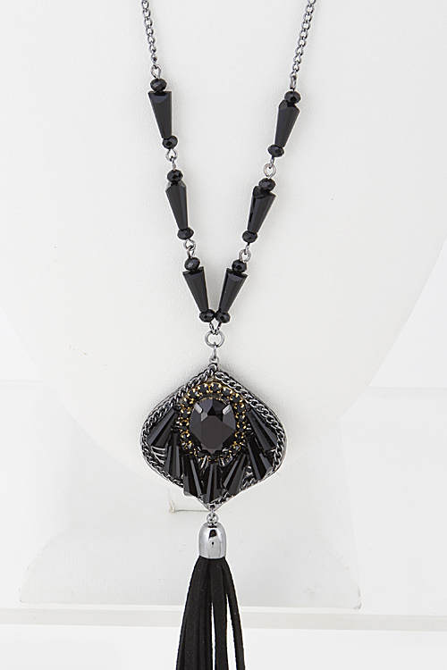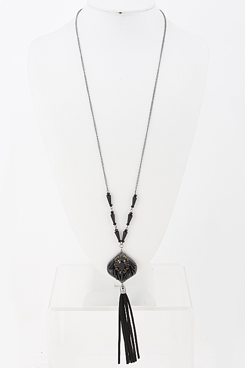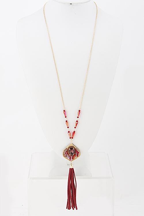 - * Long Bead Pendant Drop Necklace with Tassel Detail 5KAB7 * 32 x 7" approx.