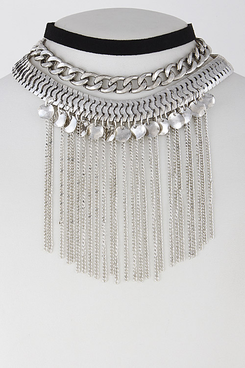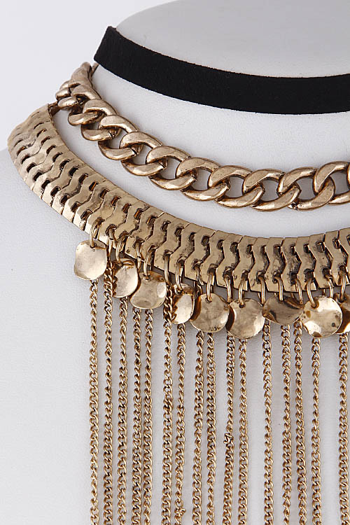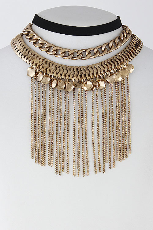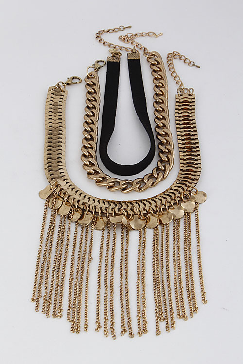 • * Elegant Chain Long Fringed Choker Set 6GCF4 * 0.8 X 12" approx. * 0.5 X 12" approx. * 0.5 X 14" approx.