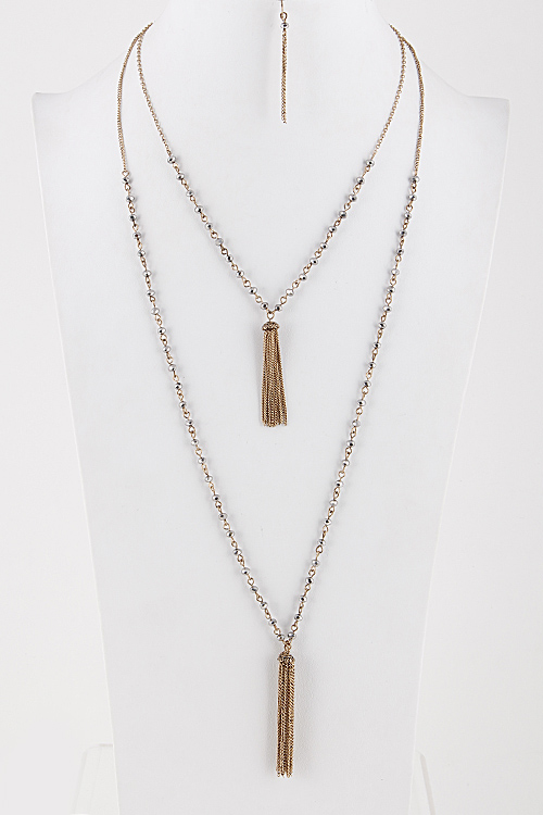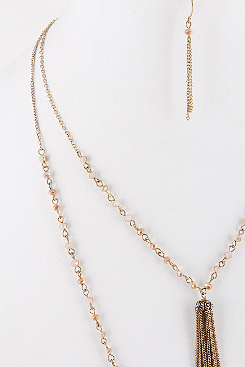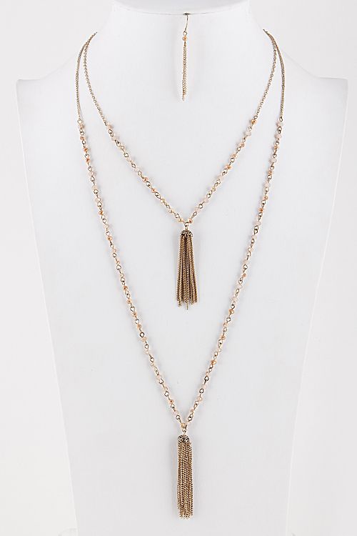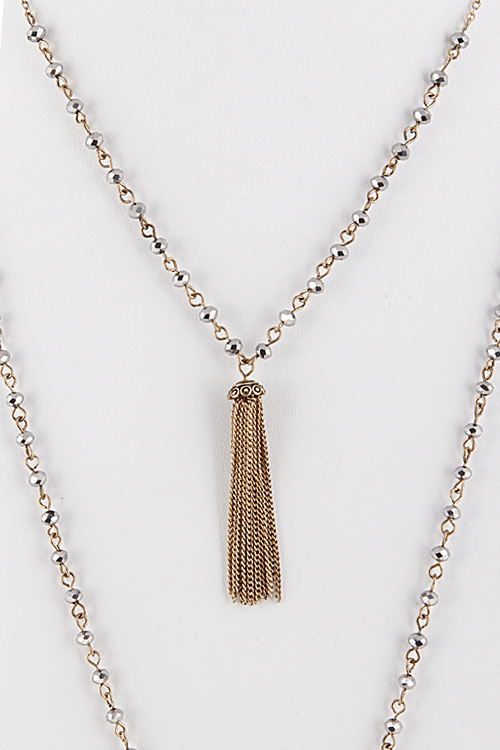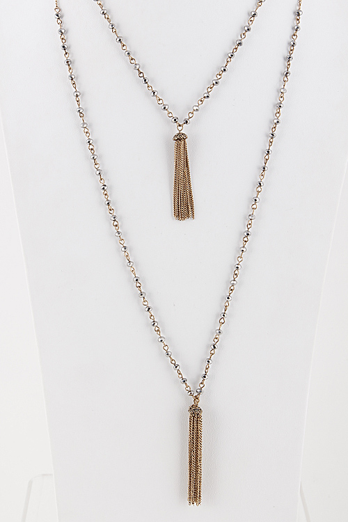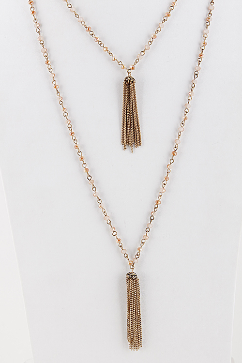 • * Tassel Chain Layered Necklace with Beaded Detail 5JAE9 * 34" approx.