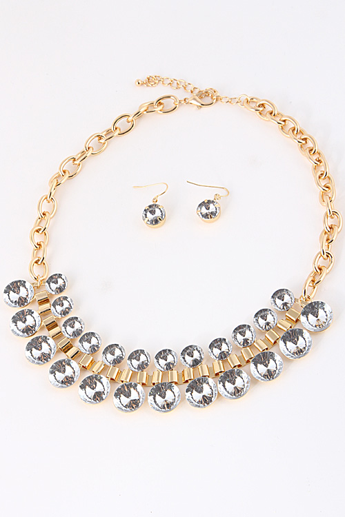 • * Double Rhinestone Sided Chain Necklace 5ABD6 * 16" approx.