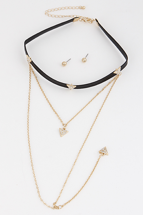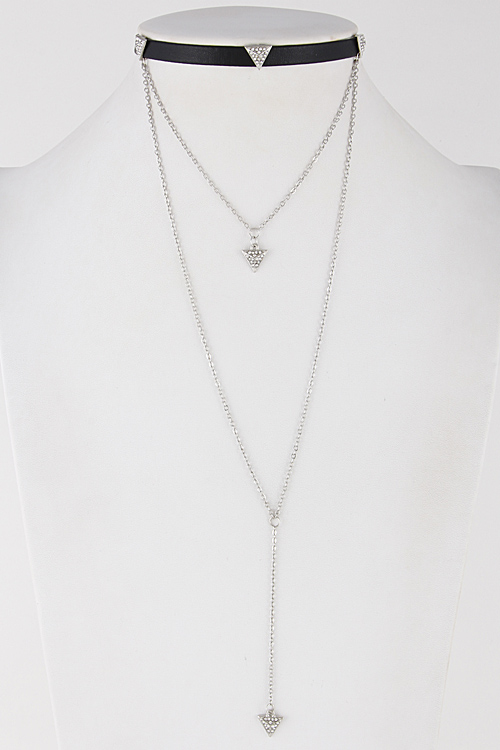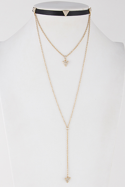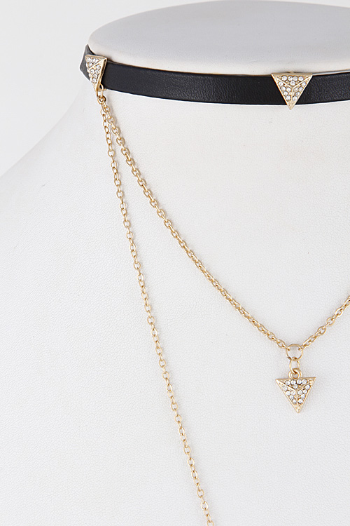 • * Unique Choker Necklace With Rhinestone Triangle Emblem 7ABA7 * 0.5 x 12" approx.