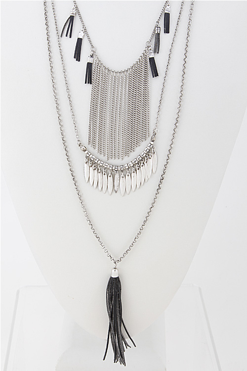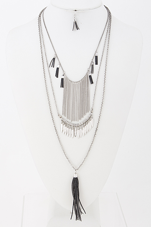 • * Tribal Layered Necklace Set with Tassel Fringe and Oval Charm Detail 5JCH1 * 30X5" approx.