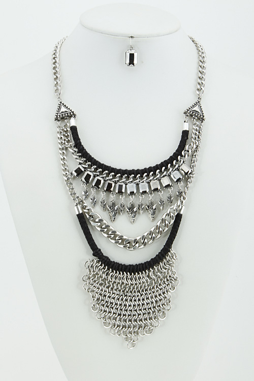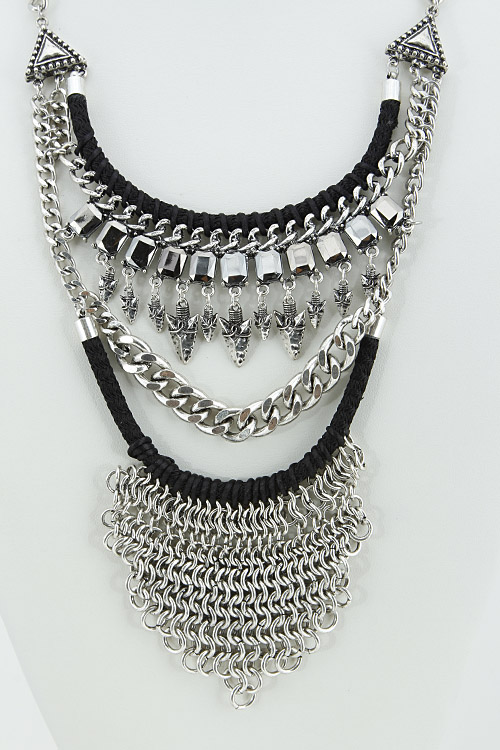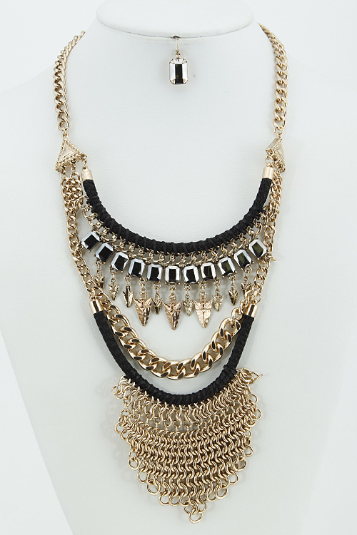 - * Tribal inspired Mixed Pattern with Arrowhead and Chain Detail Necklace 5JBG5 * 16X6" approx.