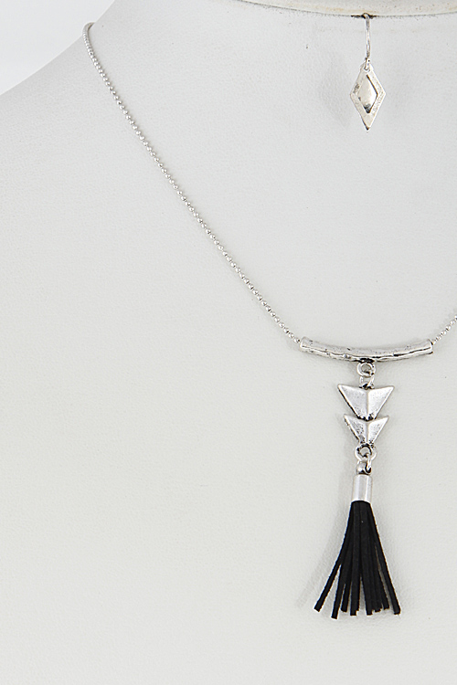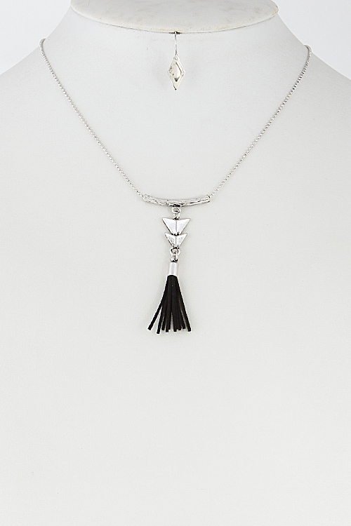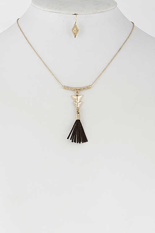 • * Simple Bar Necklace With Arrow And Tassel Set 6DCF4 * 16" approx.