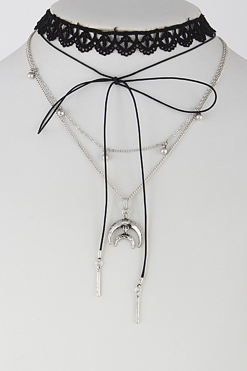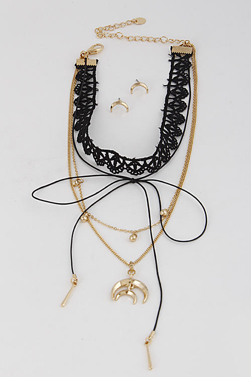 • * Multi Layer Lacy Patterned Crescent Choker Set 6GCE9 * 0.5 X 10" approx.