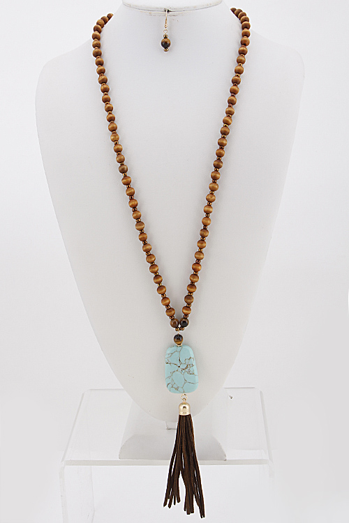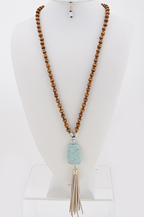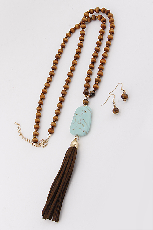 • * Aztec Stone Bead Necklace Set 6ACE1 * 30 X 6" approx.
