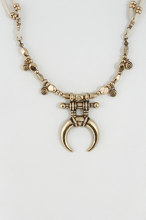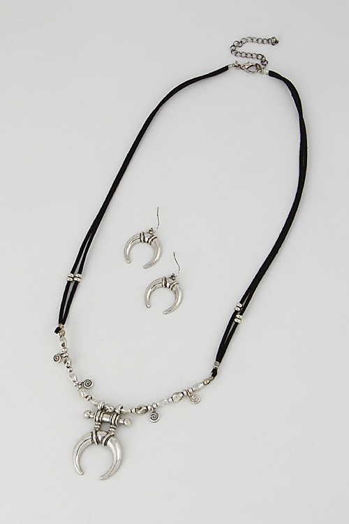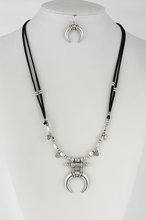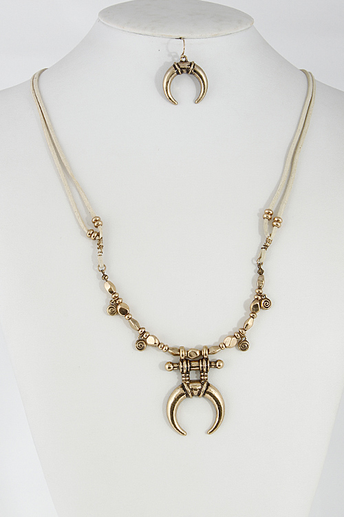 - * Simple Double Layered Crescent Necklace Set 6DCE9 * 24" approx.