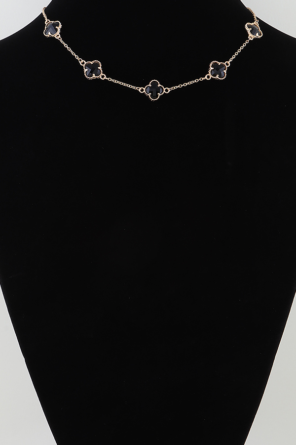 - * This Stone Clover Charms Chain Necklace from H&D Accessories features multiple stone-embedded clover charms linked by a delicate chain. The intricate clover design and fine craftsmanship create a delicate and elegant look, making it a charming piece that adds a touch of grace to any jewelry collection.