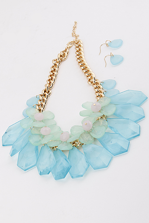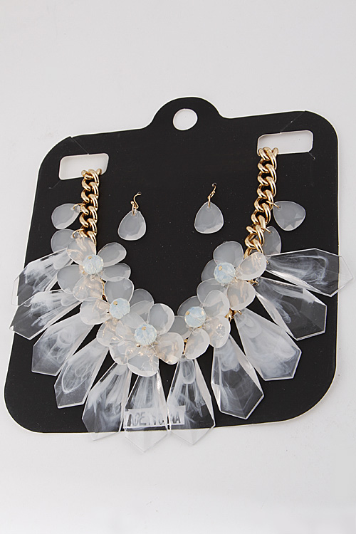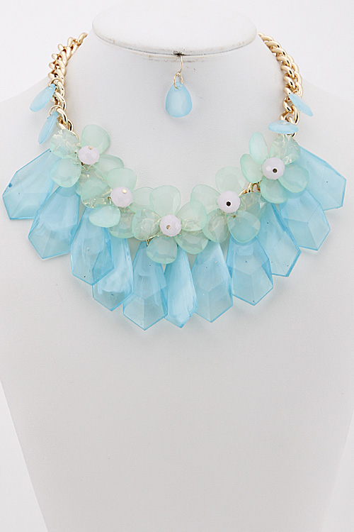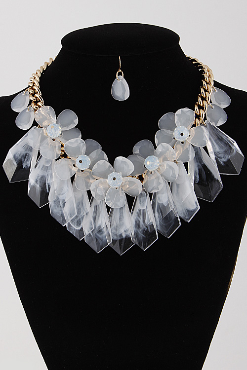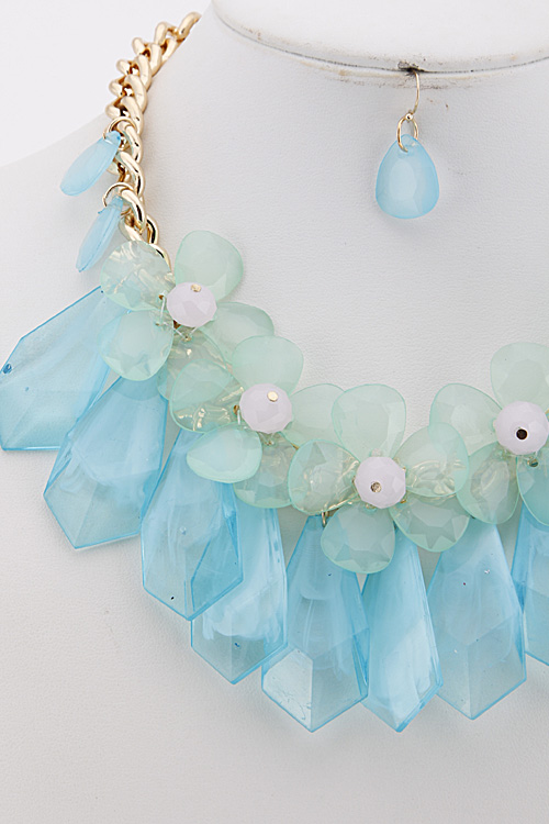 - *Flower Faux Crystal Statement Necklace Set 5LBA1 * 17 X 3" approx.