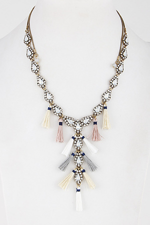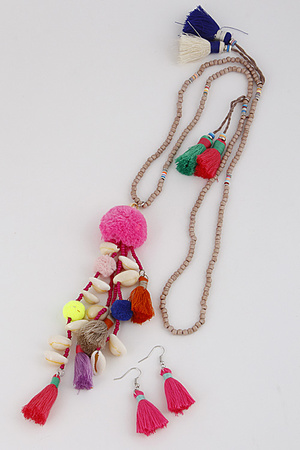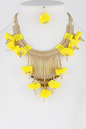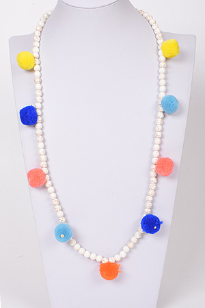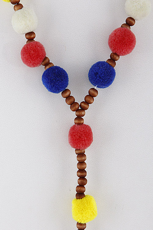 Trendy Beaded Tassel with Puff Ball Necklace 7DBB7