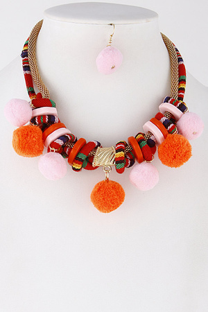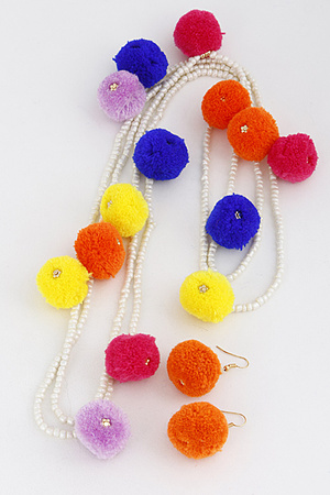 Simple Yet Unique Puff Ball Necklace Set 6HAE5