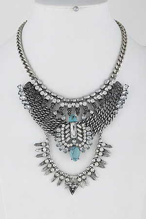 Aztec Inspired Rhinestone Statement Necklace Set 6HCF1