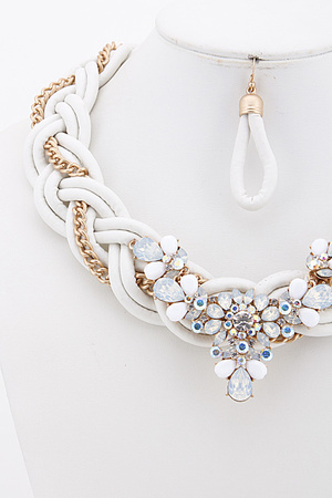 Flower Faux Crystal Statement Necklace Set 5LBA1