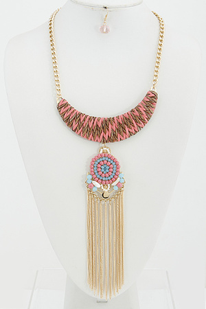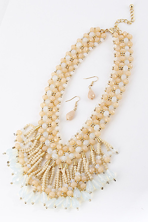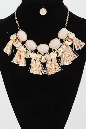 Colorful Statement Necklace With Fringes And Beads Set 6CAE5