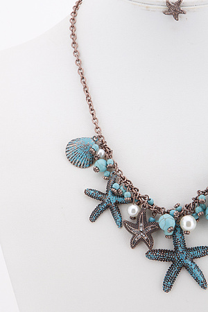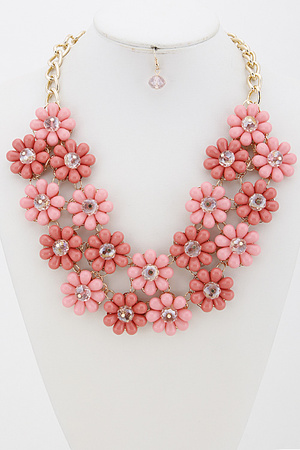Flower Statement Necklace Set with Bead Detail 6ABF11