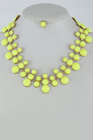 Round Shape with Color Stone Attached Fashion Necklace 5LCC6