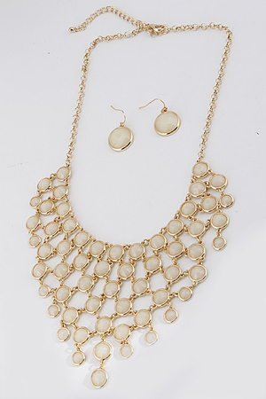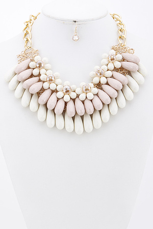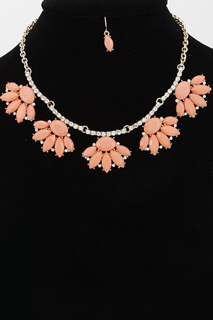 Stone Statement Necklace With Tear Drop And Flower Design Set 6BAI8