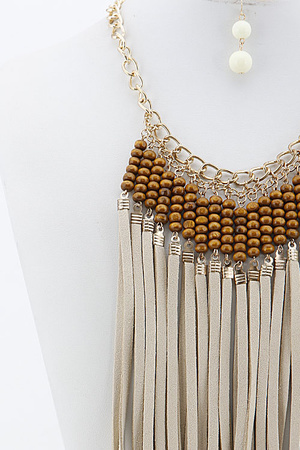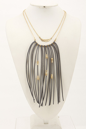 Double Layered Necklace With Leaf And Fringes 6CAB1