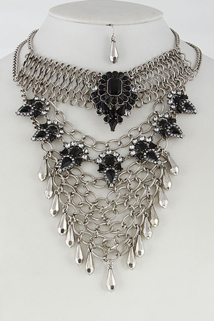 Rhinestone and Chain Statement Necklace Set 6ACE9