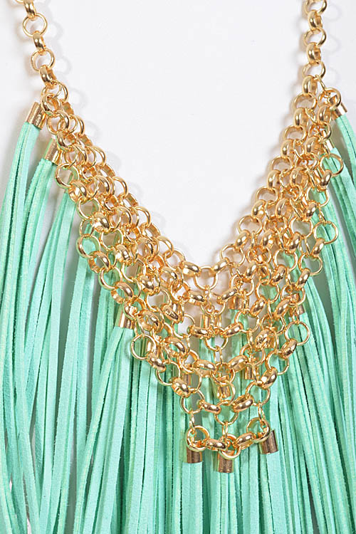 • * Circle Patterned Chain Necklace With Multiple Fringes * 23.5 x 8" approx.