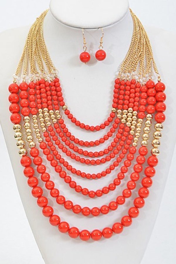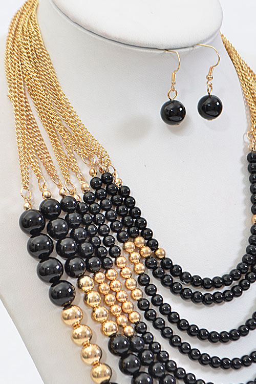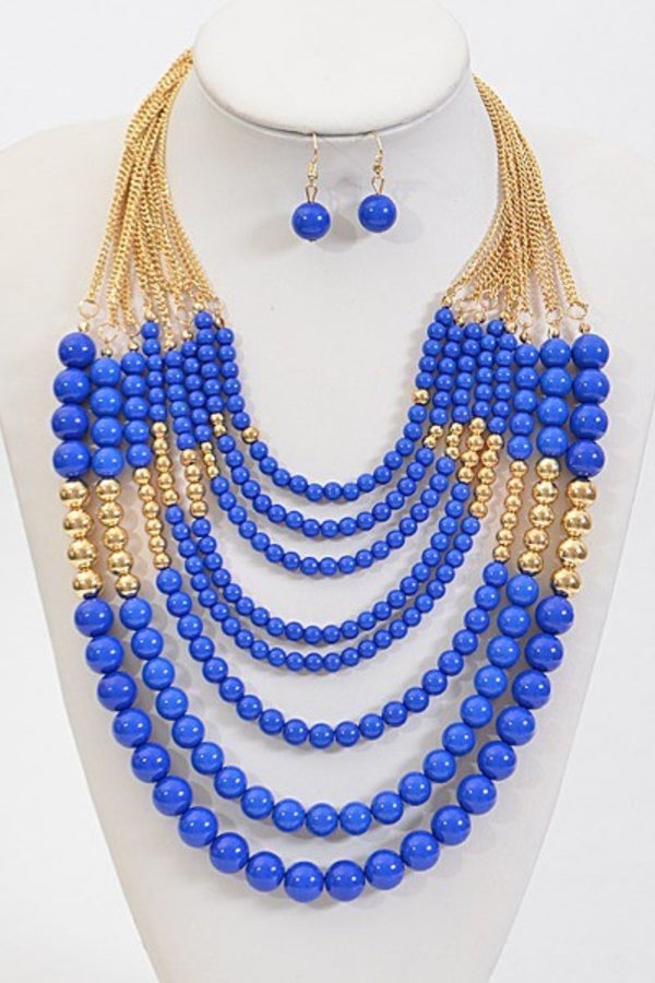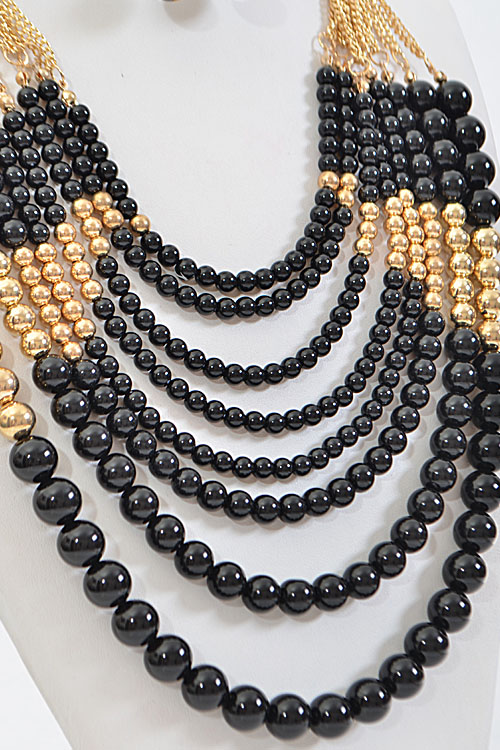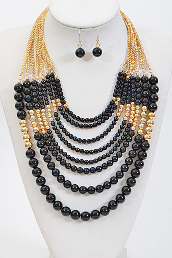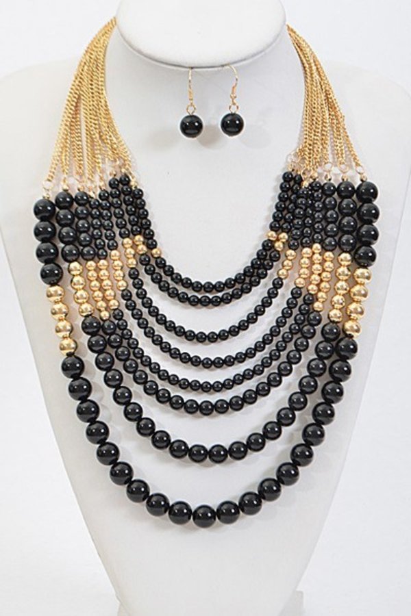• * Thick Multi Layered Bead Necklace Set