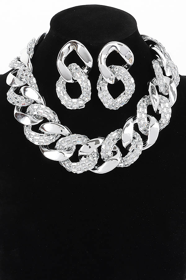- * Elevate your accessory game with the CCB Chain Rhinestone Necklace Set. This stunning rhinestone chain necklace and earring combination from H&D Accessories is designed to catch the light and turn heads. Perfect for any occasion, this set adds a vibrant touch to your outfit, making you the center of attention.