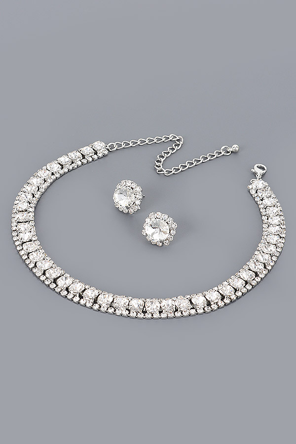 - * Introducing the "Rhinestone Necklace set" by H&D Accessories, a stunning collection that features a dazzling rhinestone necklace and matching earrings. This exquisite set is designed to elevate any outfit, making you shine with sophistication and grace.